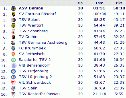 Abschlusstabelle Kreisliga Plön 1992/93